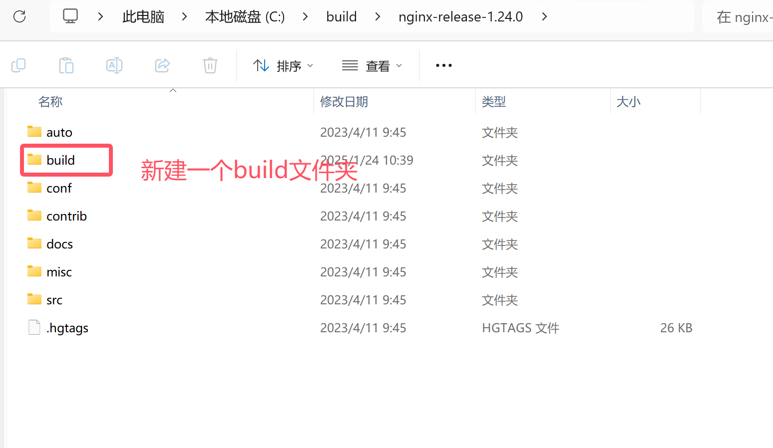 在nginx源码根目录中新建“build”目录,再在“build”目录中新建“lib”目录