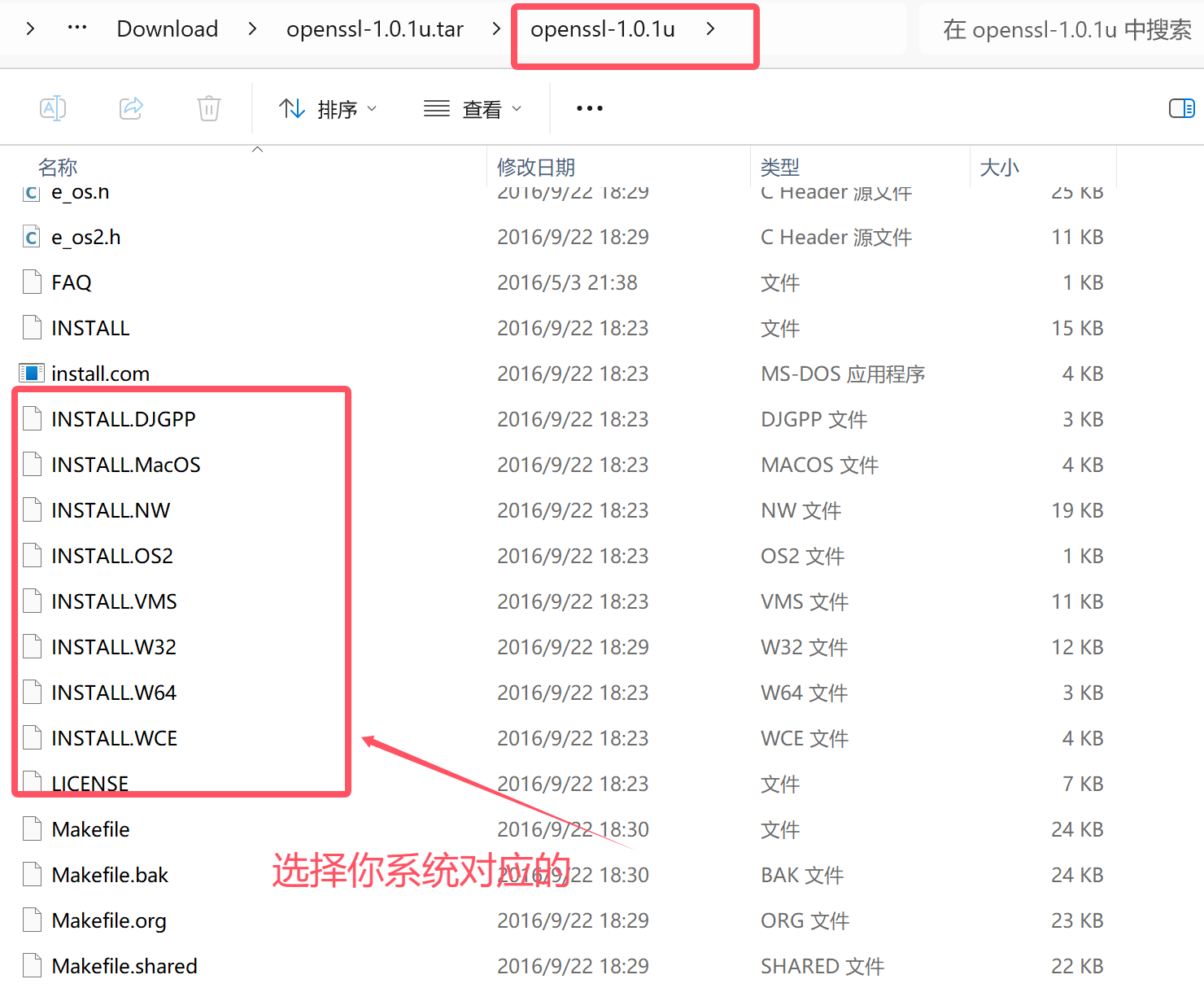 如果你选择使用的openssl是比较旧的版本,根目录的结构可能是这样的,可以按照图所示步骤查看需要运行的配置指令