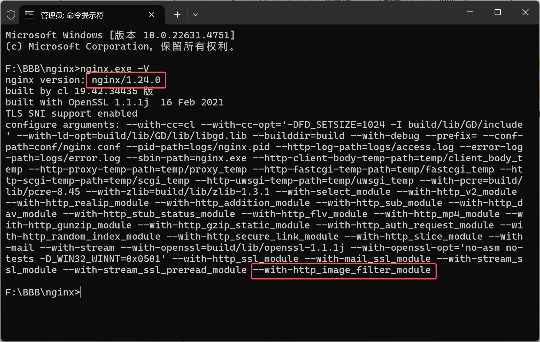 nginx.exe -V